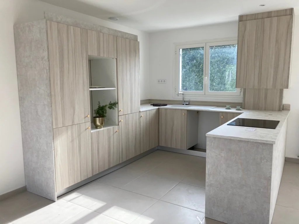 Maison prête à vivre : placards prêts à aménager, cuisine, salle de bain